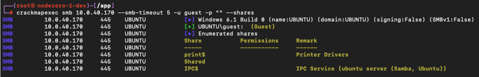 You can verify that a guest has access to list samba shares using crackmapexec.