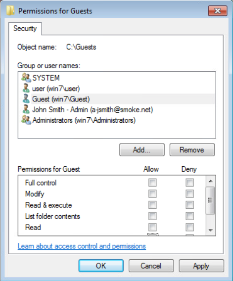 If the Guest account is in use, restrict access to available shares by right clicking the share folder on the host, selecting the “Security” tab, selecting the “Guest” user, and removing any privileges.