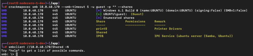 Now the guest can still list the shares but is unable to connect to the Shared folder.